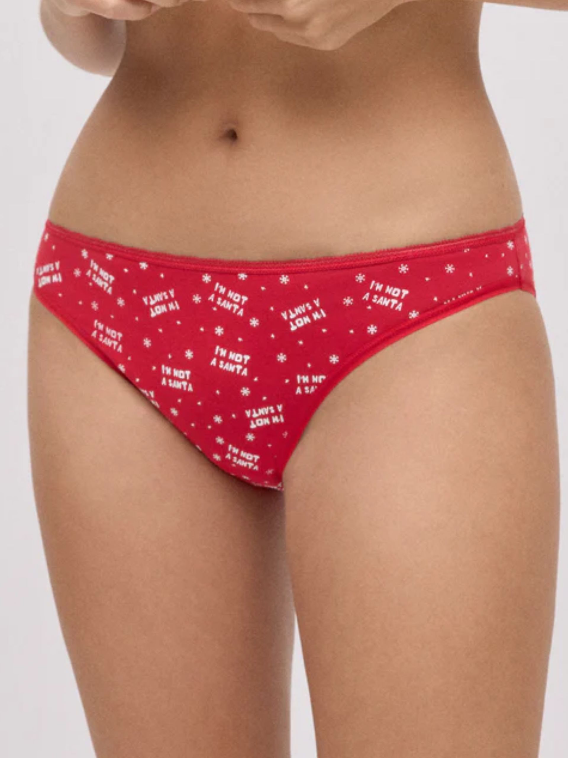 Braguita mini estampado navideño sobre fondo rojo. Cajita regalo. Packaging especial.