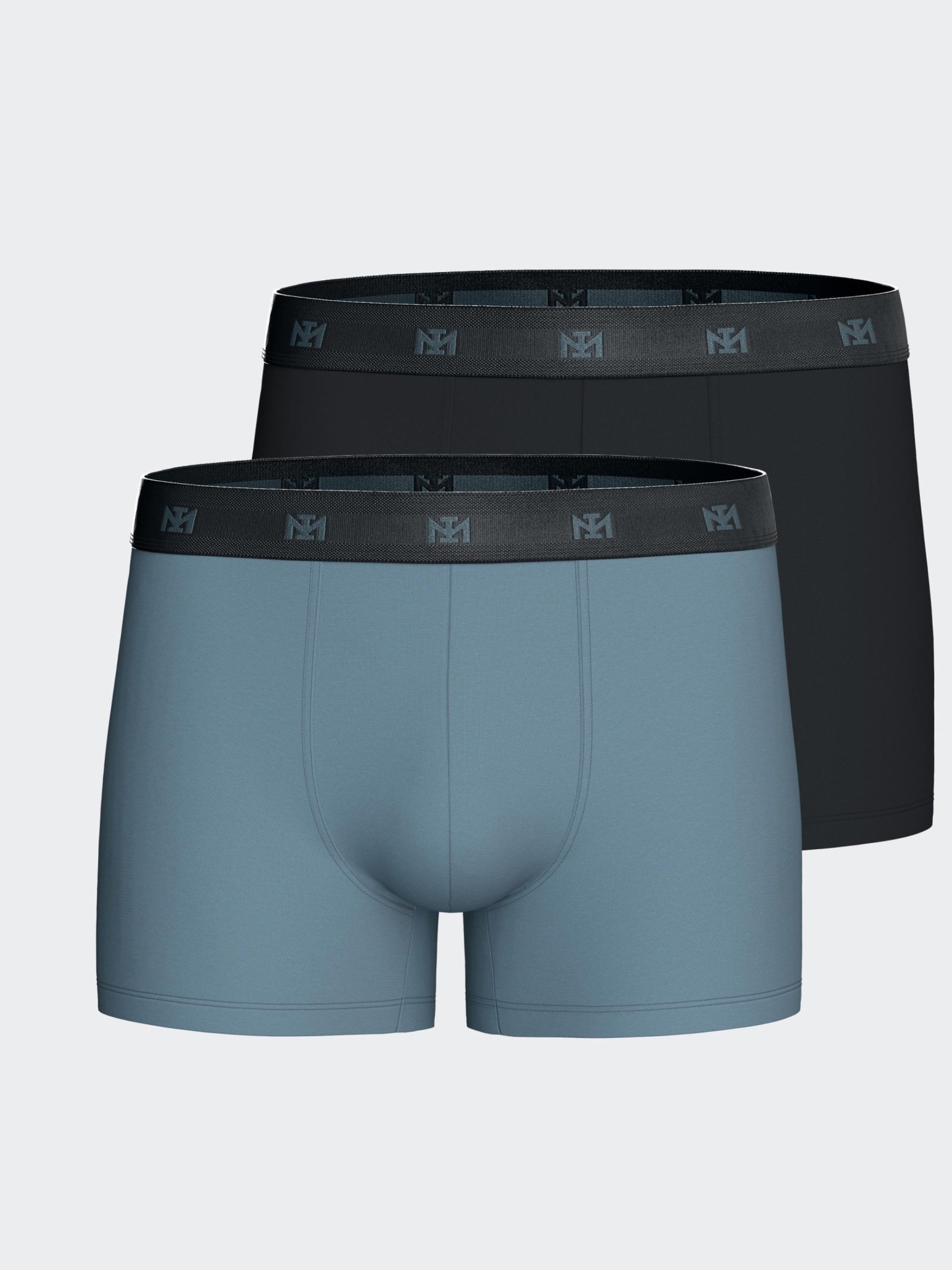 Pack de 2 boxers lisos con cintura elástica. Punto ligero y cómodo en Lyocell. Colores: azul claro / negro.