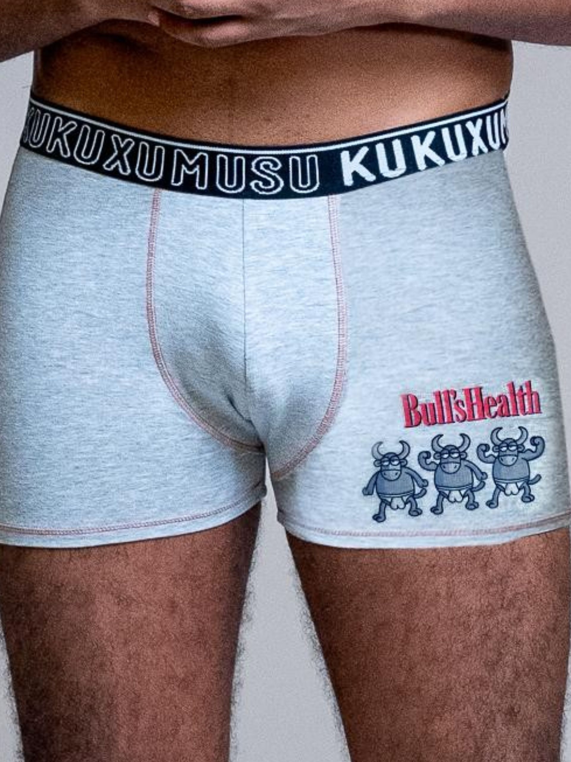 Pack de 2 bóxers 97% algodón. Uno liso gris claro con estampado Bull´s Healt en un lado y otro rojo estampado completo rebaño.