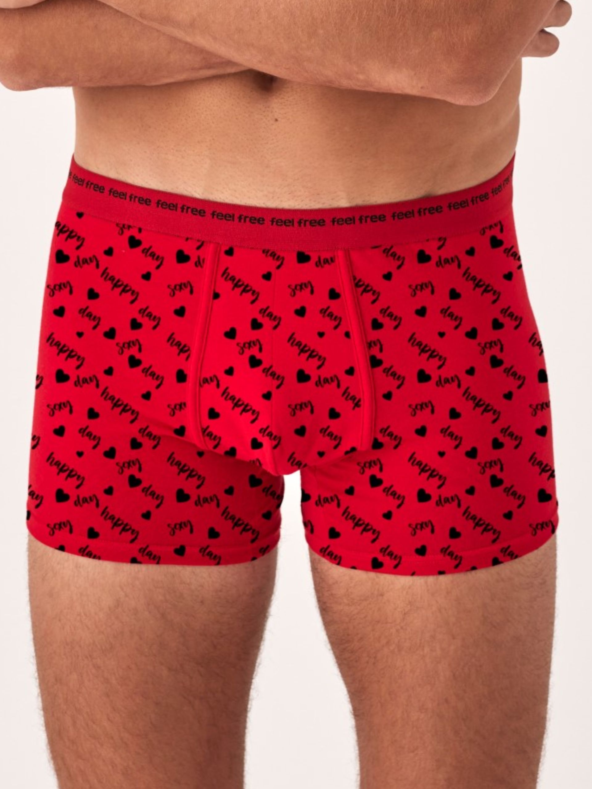 Bóxer  navideño estampado fondo rojo con letras en negro Happy Day.