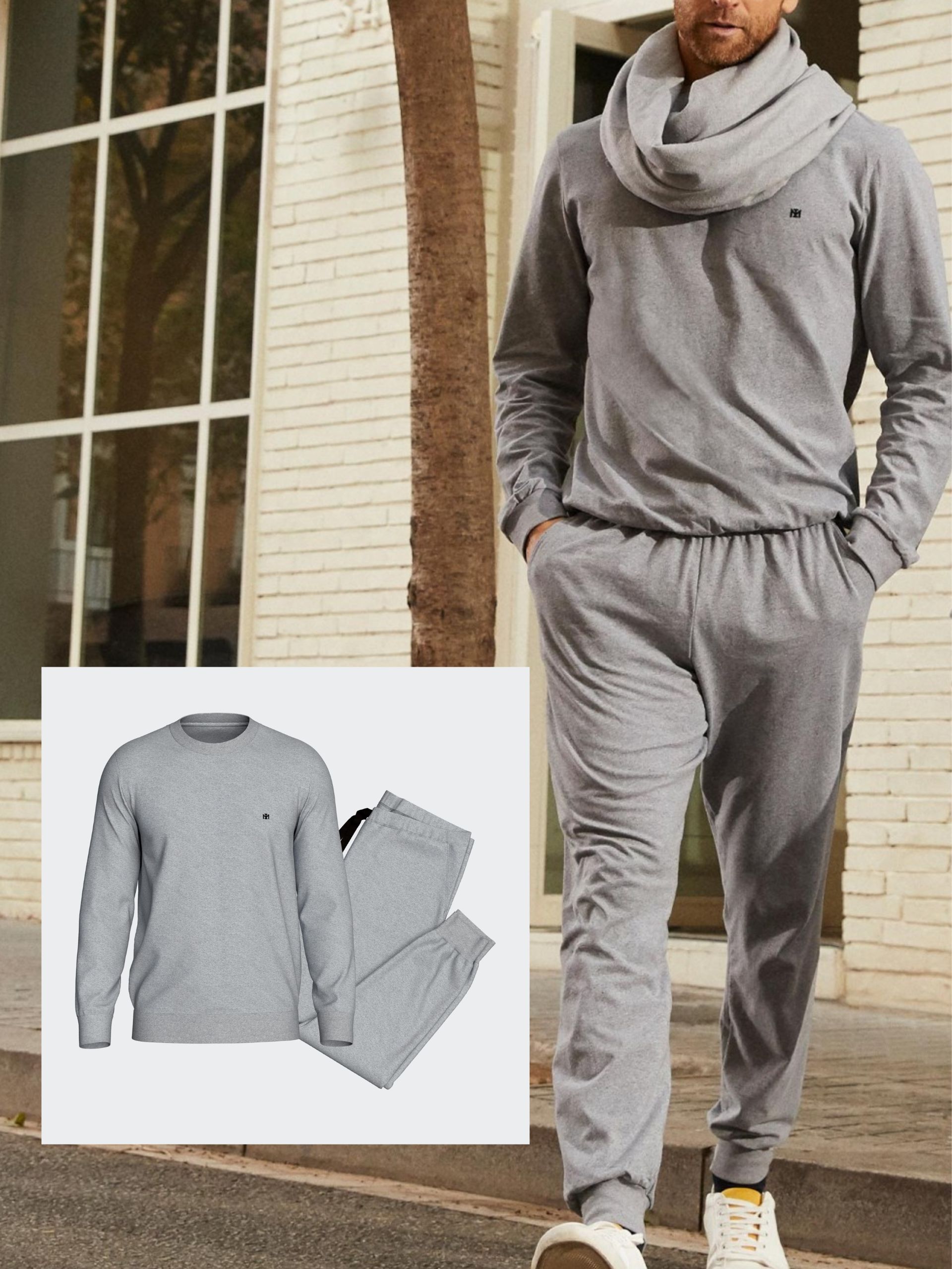 Conjunto sport Revive: Good Earth cotton. Camiseta manga larga con puños y pantalón con bolsillos laterales y puños. Color gris.