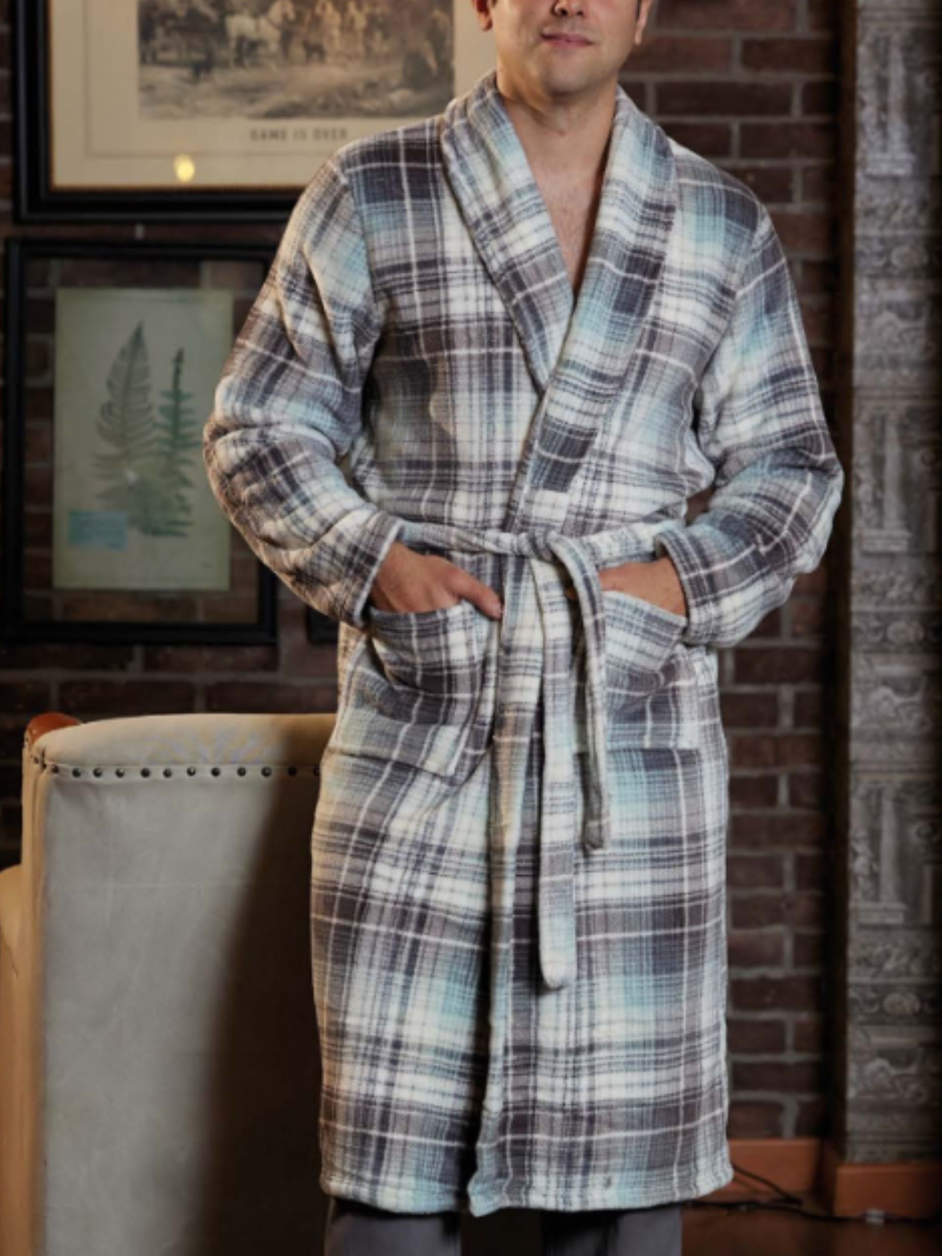 Bata de felpa con estampado a cuadros de punto de gallo .