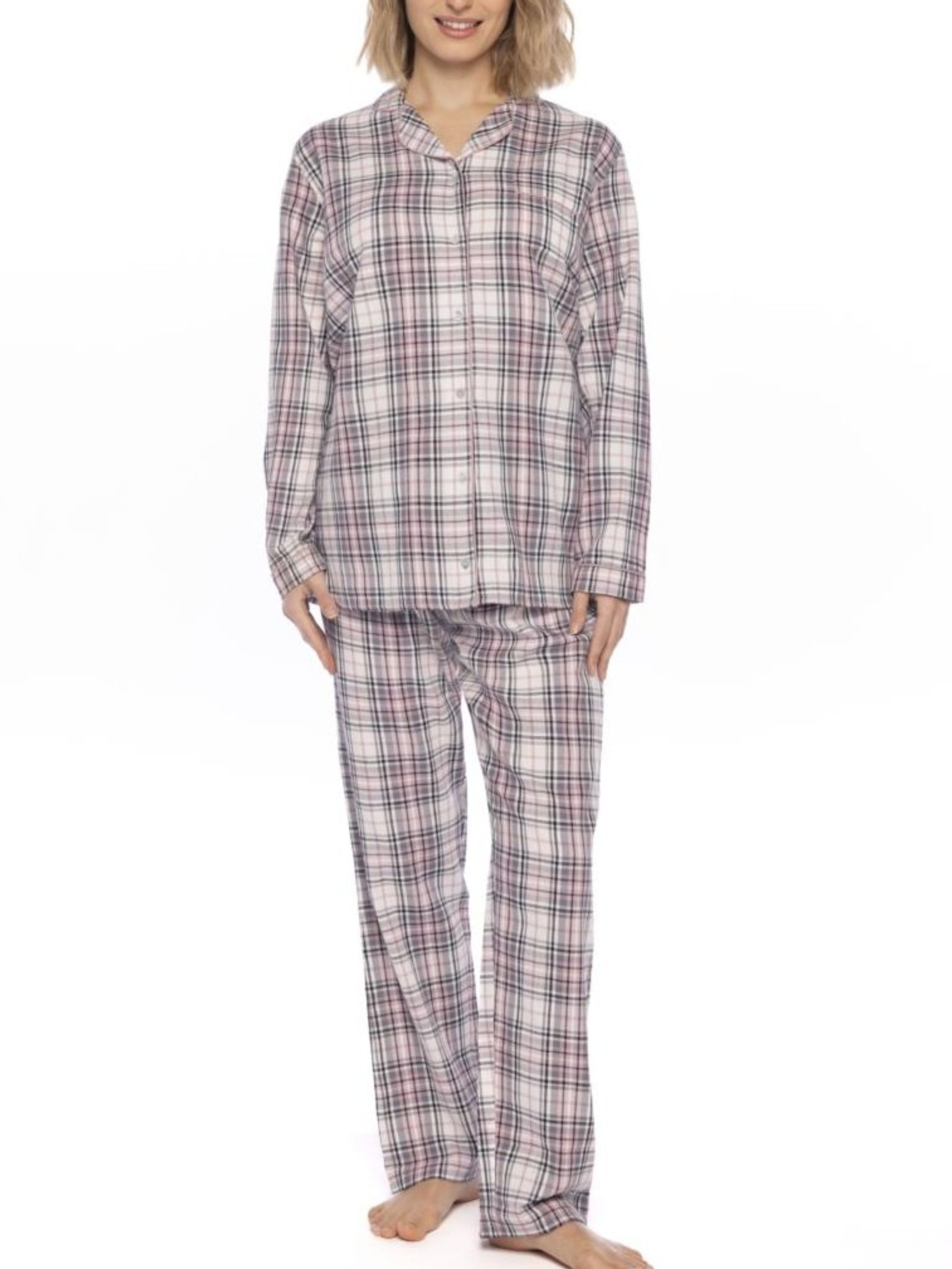 Pijama viella cuadros. Camisa abierta abotonada con bolsillo en lateral y pantalón con goma y lazada en cintura. 100% algodón.