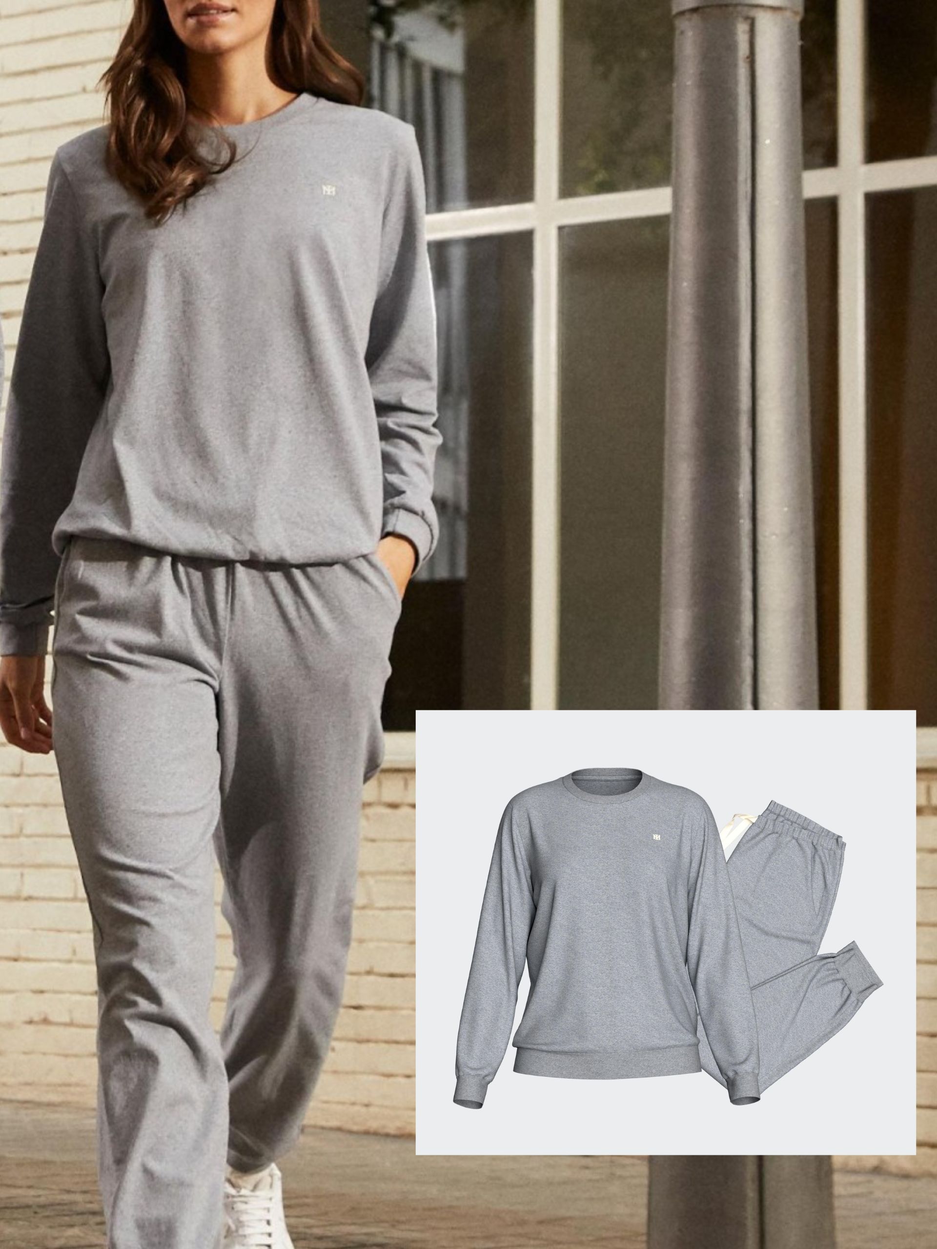 Conjunto sport Revive: Good Earth cotton. Camiseta manga larga con puños y pantalón con bolsillos laterales y puños. Color gris.