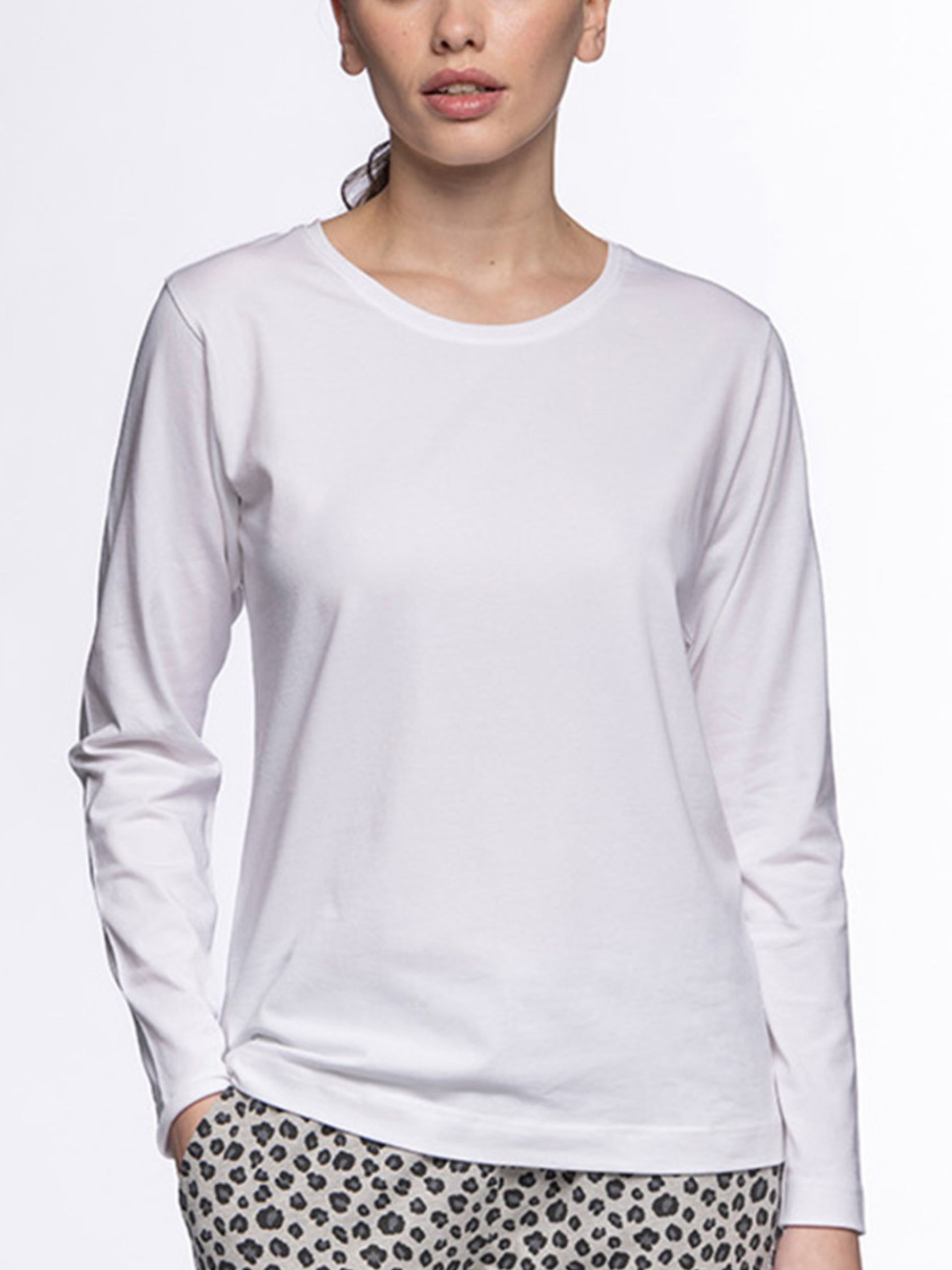 Camiseta de algodón elástico con cuello redondo. Modelo de corte clásico. Combinable con pantalones de pijama.