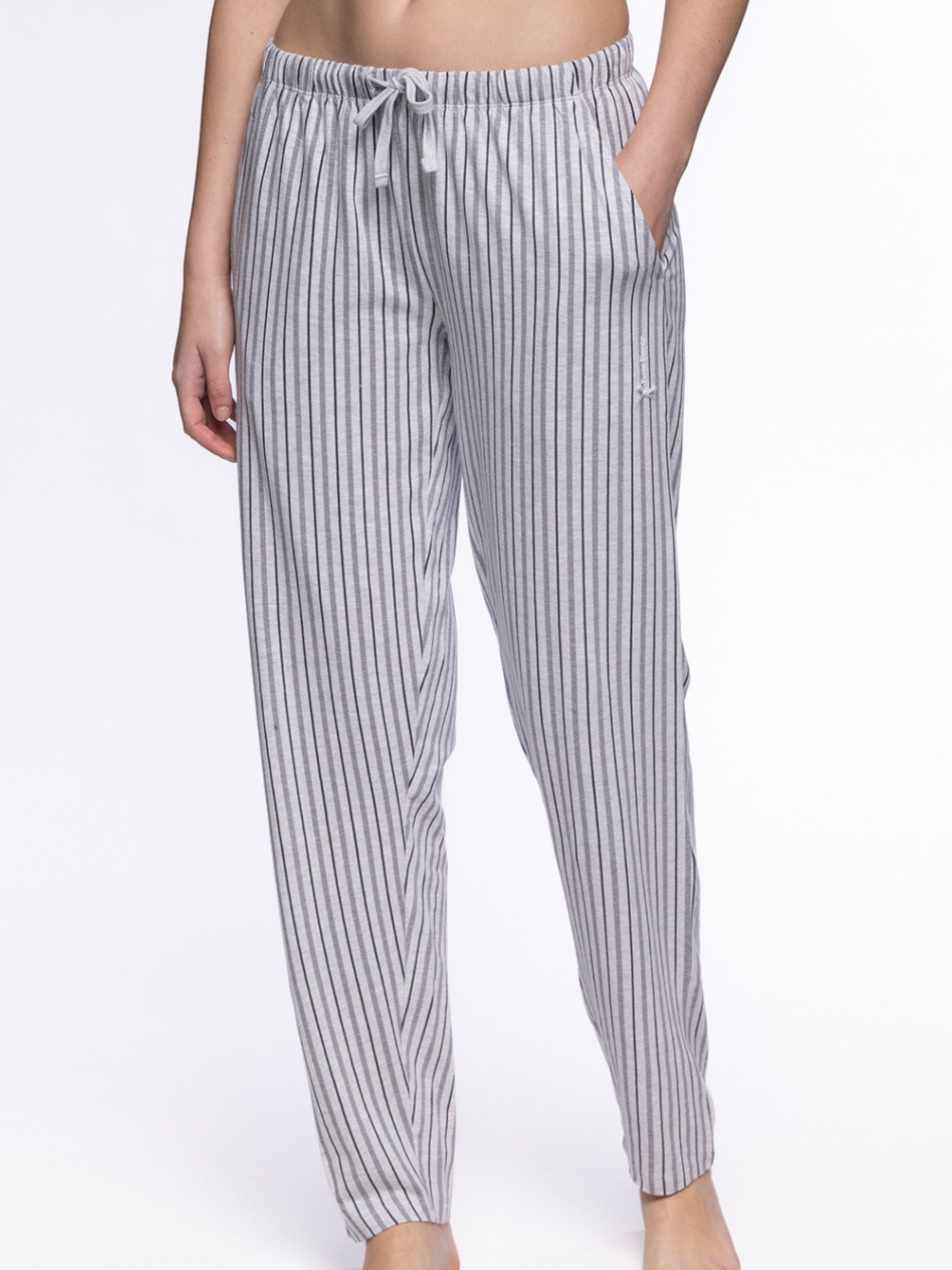 Pantalón largo estampado rayas, corte clásico con bolsillos y cintura regulable. Algodón elástico. Combina con camisetas Basix.