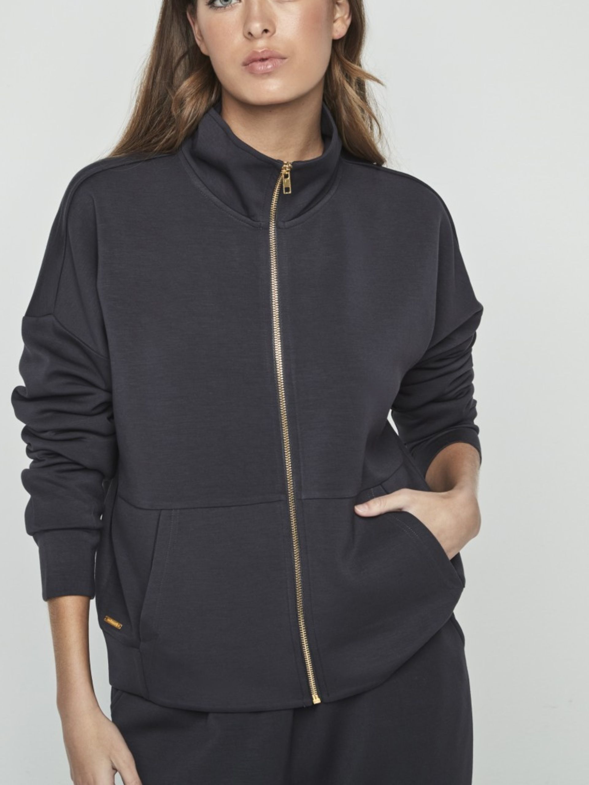 Chaqueta de algodón y modal cálido. Con Cremallera frontal y bolsillos. Combinable con prendas de la misma colección urban.