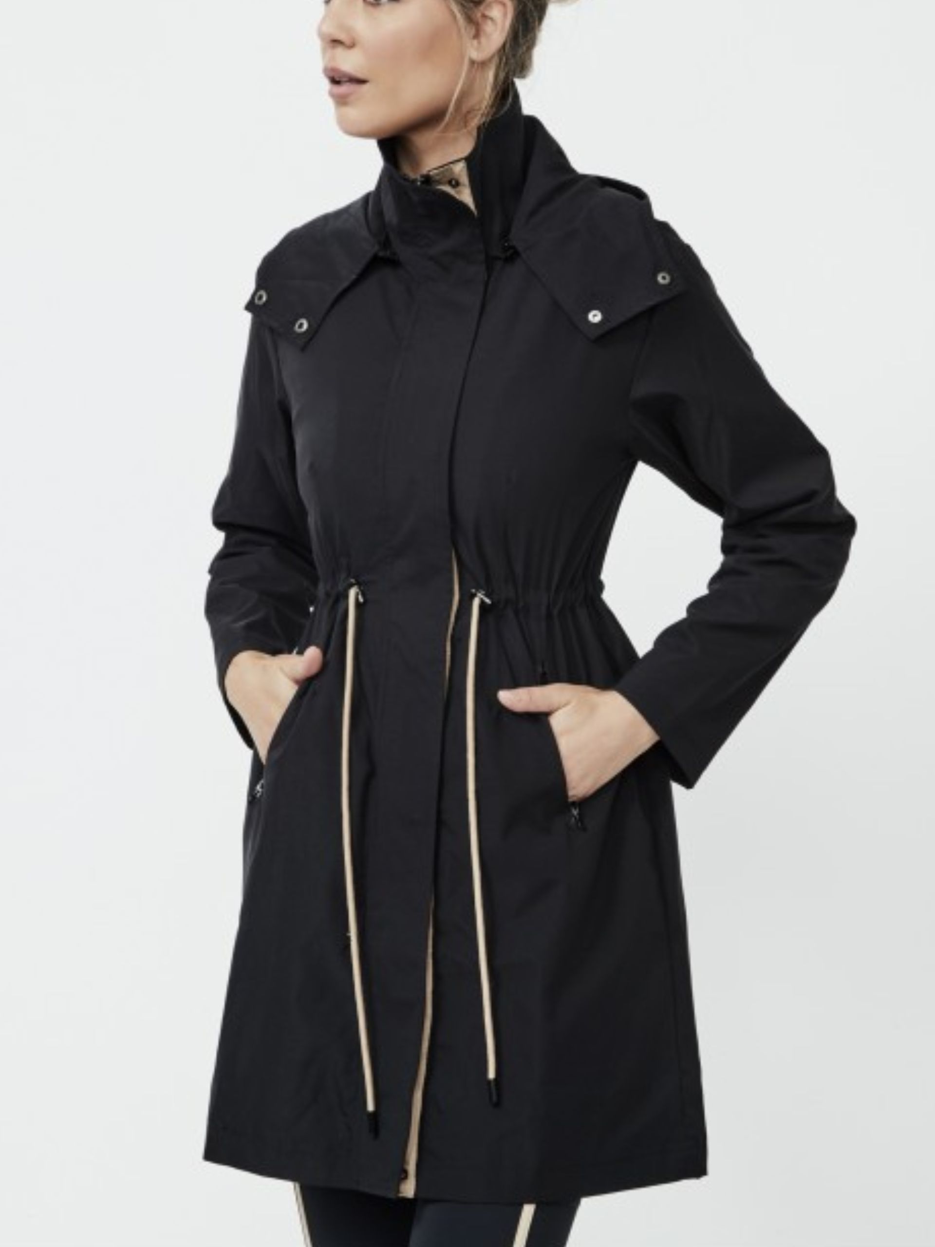Chaqueta cortavientos deportiva. Resistente al agua, con capucha y tensores para ajustar. Colores: Negro y Gris.