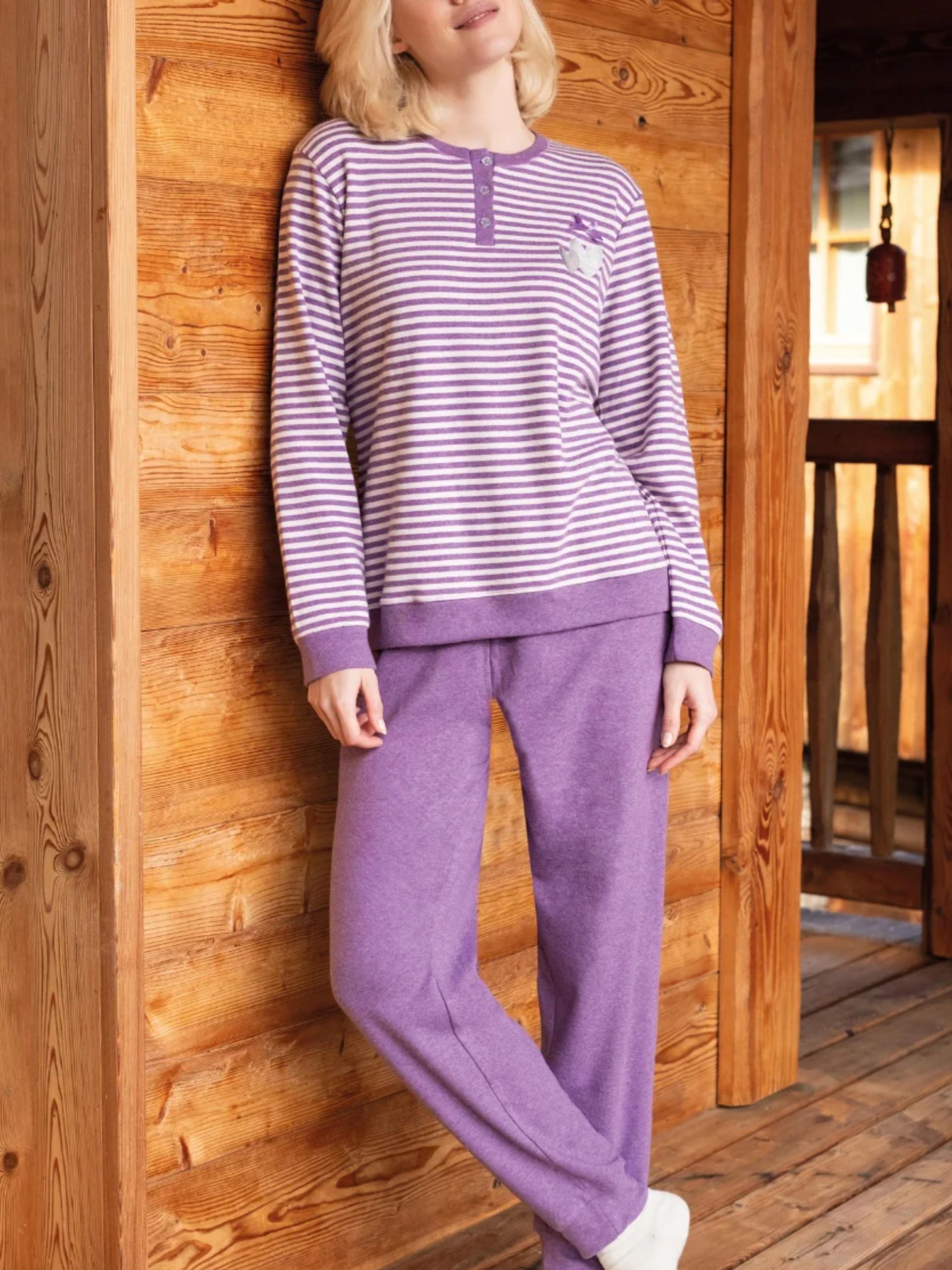 Pijama completo manga larga. Pantalón con bolsillos. Ideal para estar en casa.
